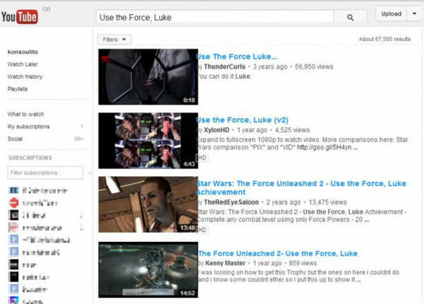 ในช่อง search ของ Youtube ให้พิมพ์คำว่า “Use the force Luke” แล้วกด Enter จะทำให้เราสามารถโยกย้ายหน้าจอ Youtube ได้ด้วยเม้าส์ราวกับใช้พลังจิตเคลื่อนย้ายวัตถุก็ไม่ปาน!
