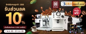 เติมเต็มรสนิยมในการดื่มกาแฟด้วยเครื่องชงกาแฟ แก้วกาแฟ และกาแฟคุณภาพจาก DUCHESS แบรนด์ไทยที่ได้รับความนิยมสูงสุดในขณะนี้ สิทธิพิเศษลูกค้า 3BB รับส่วนลด 10% เมื่อซื้อสินค้าครบ 2,000 บาทขึ้นไป พร้อมบริการจัดส่งฟรี กดรับรหัสส่วนลดได้ที่แอปฯ 3BB Member Application แล้วแจ้งรหัสส่วนลดเพื่อรับสิทธิ์ได้ที่ www.facebook.com/DuchessThai และ Line: @duchesscoffee ถึง 31 กรกฎาคม 2565 หรือจนกว่าจำนวนสิทธิ์หมดลง