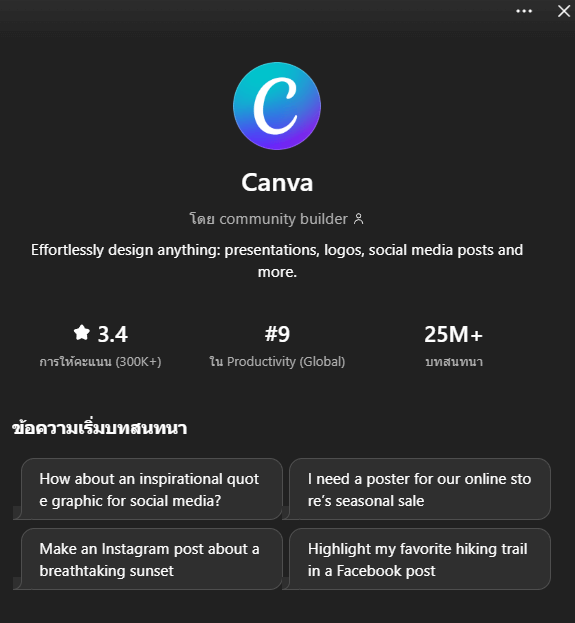 ออกแบบทุกสิ่งได้อย่างง่ายดาย ไม่ว่าจะเป็นงานนำเสนอ โลโก้ ทำภาพโพสต์บนโซเชียลมีเดีย และอื่นๆ อีกมากมาย แค่ดาวน์โหลด Plugin ที่เมนูสำรวจ จากนั้นพิมพ์ค้นหา Canva แล้วเริ่มใช้งานได้เลย