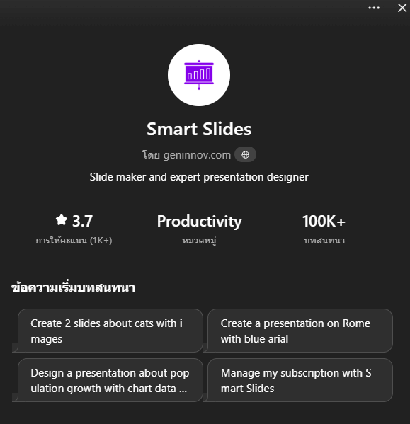 ส่วนเสริมที่ช่วยทำให้การทำสไลด์ง่ายขึ้นแบบ 100 เท่า แค่พิมพ์ข้อมูลที่ต้องการ จุดเด่นของปลั๊กอินตัวนี้คือใช้งานง่าย และออกแบบมาเพื่อสร้างสไลด์สื่อต่างๆ ไม่ว่าจะเป็นเพื่อธุรกิจ และการศึกษา จะช่วยประหยัดเวลาได้มากเมื่อเทียบกับการสร้างสไลด์เอง