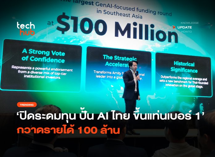 [สู่ระดับโลก] นับเป็นข่าวดีสำหรับประเทศไทยเลย เมื่อ Amity บริษัทเทคโนโลยีสัญชาติไทย ประสบความสำเร็จในการปิดดีลระดมทุนรอบ Series D ด้วยมูลค่าสูงถึง 100 ล้านดอลลาร์ฯ (ราว 3,600 ล้านบาท) สร้างสถิติเป็นบริษัทที่ระดมทุนด้าน Generative AI ที่สูงสุดในภูมิภาคเอเชียตะวันออกเฉียงใต้