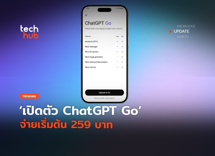 ไทยเป็นหนึ่งใน 16 ประเทศในเอเชียที่เปิดตัว ChatGPT Go ในวันนี้
