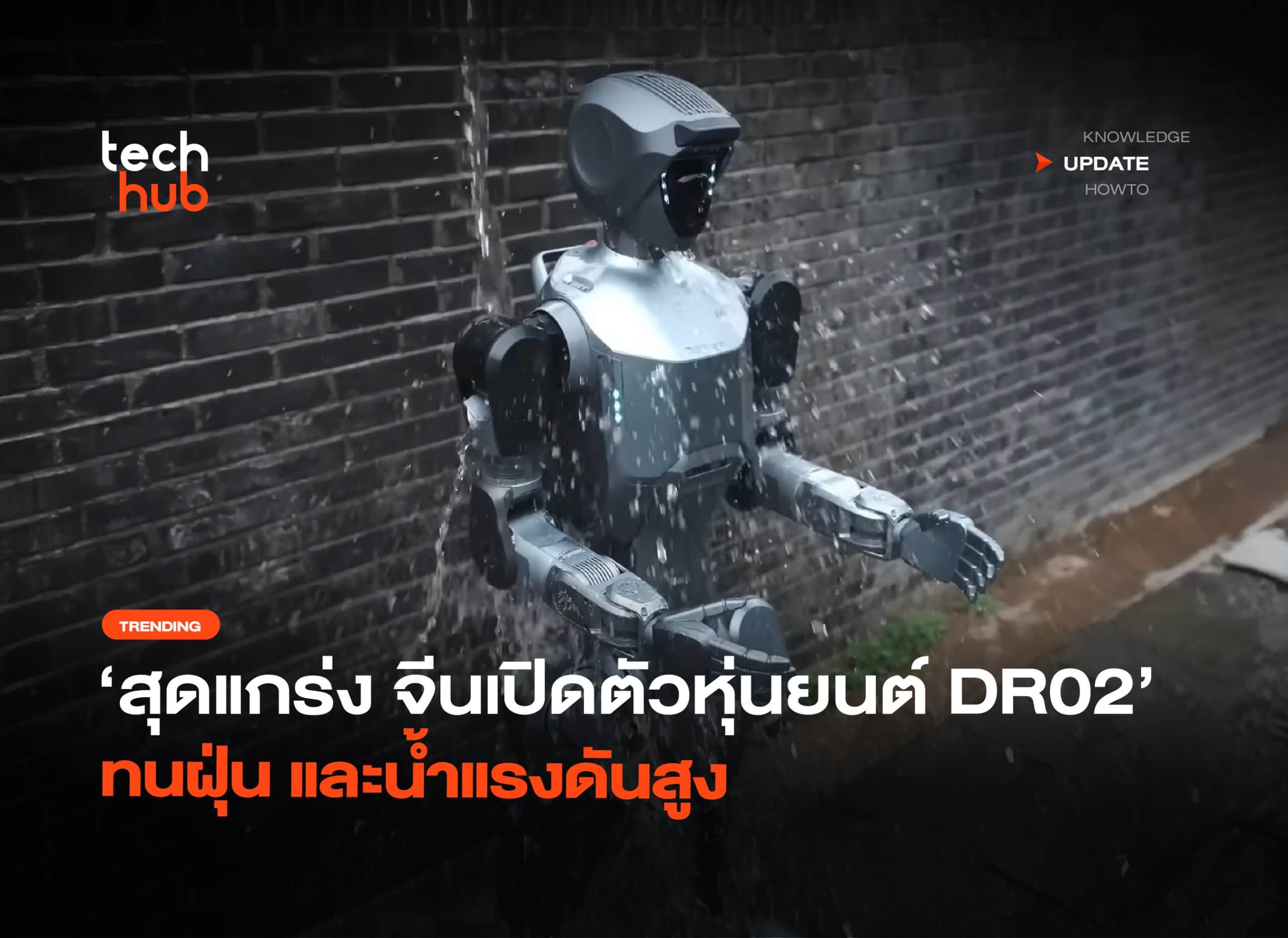 DR02 ถือเป็นหุ่นยนต์ฮิวแมนนอยด์ตัวแรกที่แข็งแกร่ง มาพร้อมมาตรฐานในด้านการป้องกันฝุ่นและน้ำแรงดันสูง