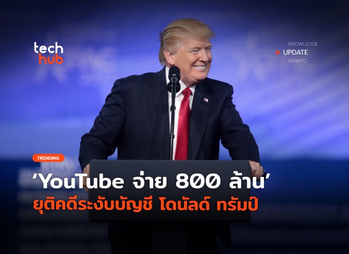 ละเมิดสิทธิ YouTube จ่าย 800 ล้าน ยุติคดีระงับบัญชี โดนัลด์ ทรัมป์