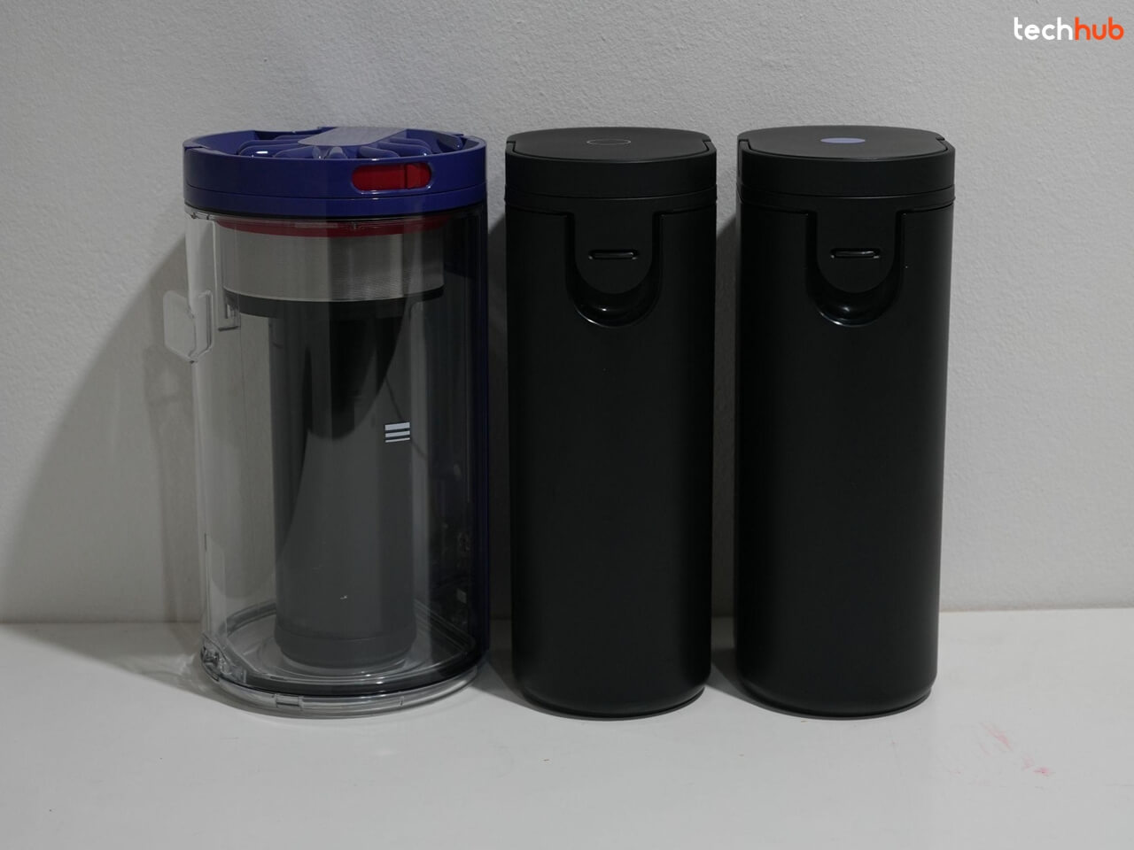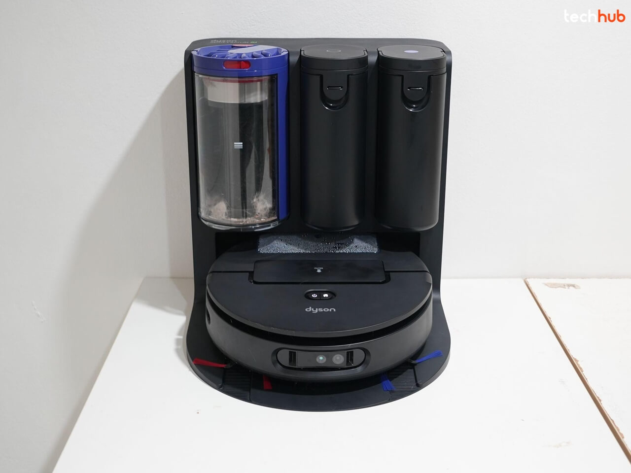 สำหรับเบื้องหลังของระบบทำความสะอาดตัวเองนี้ ก็มาจากแท่นชาร์จหรือ Base Station แบบ All-in-One ของ Dyson Spot+Scrub AI นี้เลย ซึ่งนอกจากชาร์จไฟตัวหุ่นยนต์แล้ว ยังมาพร้อมถังเก็บ 3 ชนิด ที่ช่วยให้ใช้งานตัวหุ่นได้อย่างต่อเนื่องและซักแห้งได้ตามนี้