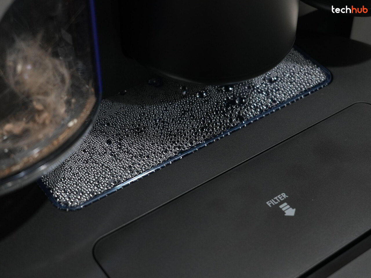 โดยออกแบบให้ตัวฐานหรือแท่นชาร์จ สามารถเก็บน้ำสะอาดเพื่อ “ซักล้าง” และ “อบแห้ง” ตัวลูกกลิ้งถูพื้นของตัวหุ่นได้เลย (เมื่อกลับเข้าแท่นชาร์จ) ภายในก็มีระบบจ่ายน้ำอุ่นสะอาด 12 จุดอย่างสม่ำเสมอ โดยมีอุณหภูมิสูงถึง 60 องศา จากนั้นก็ใช้ลมร้อนอุณหภูมิ 45 องศาช่วยเป่าแห้ง ช่วยลดความอับชื้นและป้องกันการเจริญเติบโตของแบคทีเรีย อนึ่งกระบวนการทั้งหมดนี้ผู้ใช้ไม่ต้องถอดชิ้นส่วนใดๆ ออกมาล้างเองเลย