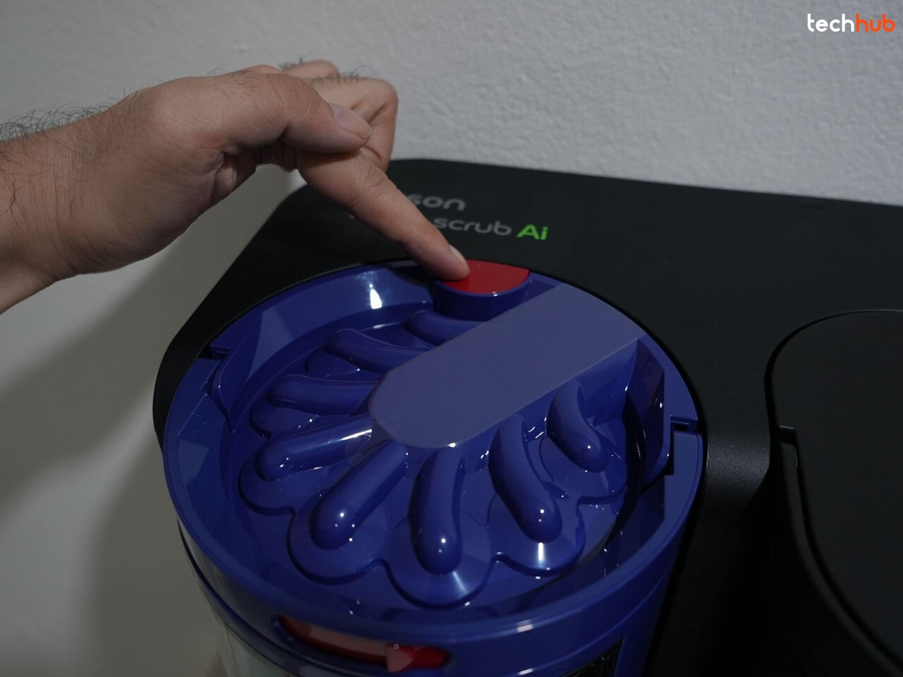 ในหุ่นยนต์ดูดฝุ่นบางรุ่น ที่อาจมีลูกกลิ้งสำหรับถูพื้นเหมือนกัน ทว่าก็ต้องมาถอดล้างและตากแห้งเมื่อถึงเวลา ไม่ก็ต้องมาคอยเทฝุ่นหลังใช้งานเสมอ คงสร้างความเบื่อหน่ายแน่นอน จุดนี้ทาง Dyson ก็มองเห็นความลำบาก จึงออกแบบให้ตัว Dyson Spot+Scrub AI มาพร้อมระบบทำความสะอาดตัวเองเลย