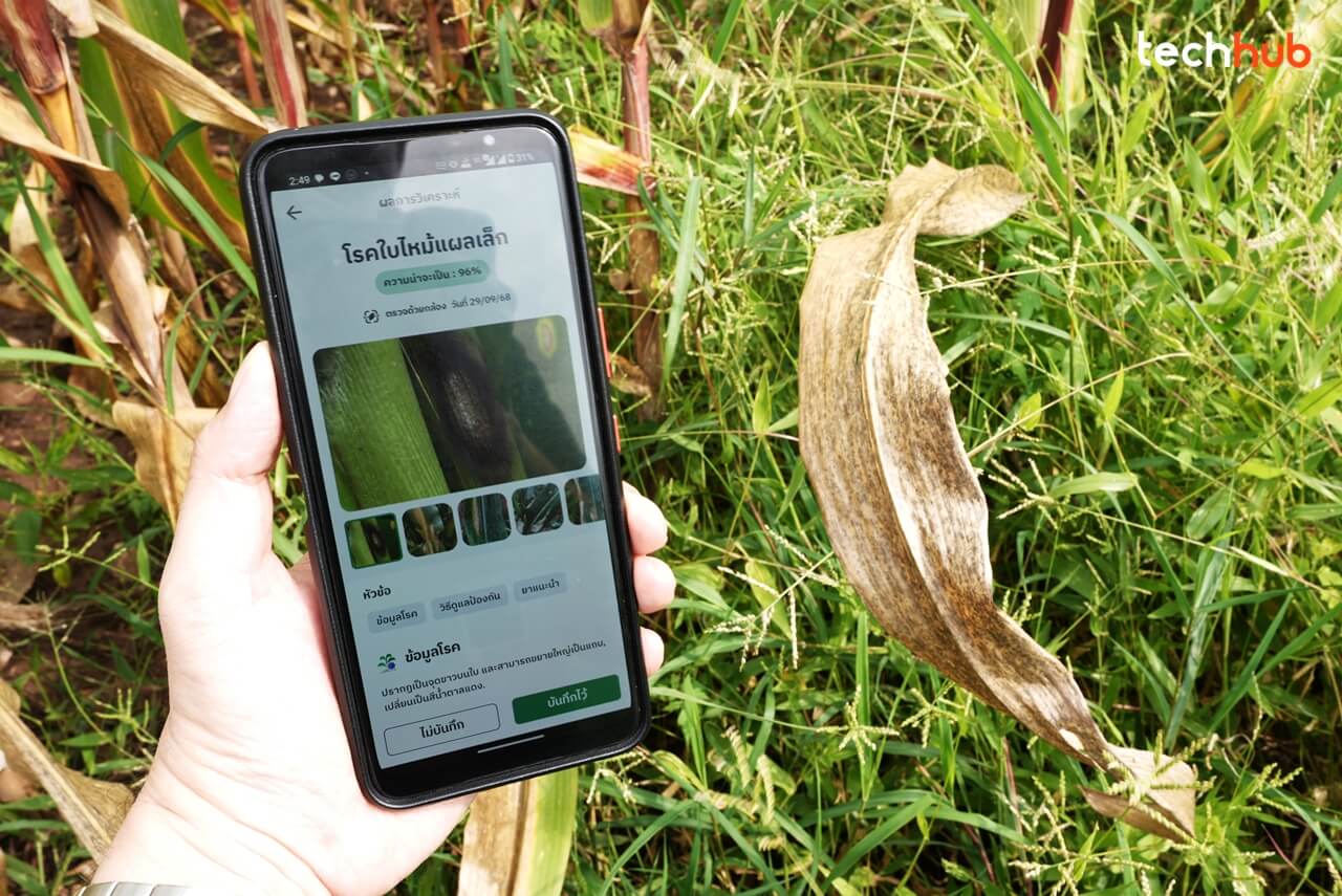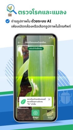 - AI ตรวจโรคพืช : แค่ยกมือถือขึ้นมาถ่ายรูปใบพืชที่มีอาการผิดปกติ เทคโนโลยี AI Vision Model จะช่วยวิเคราะห์ว่าเป็นโรคหรือแมลงอะไร พร้อมบอกวิธีป้องกันและรักษาเบื้องต้น