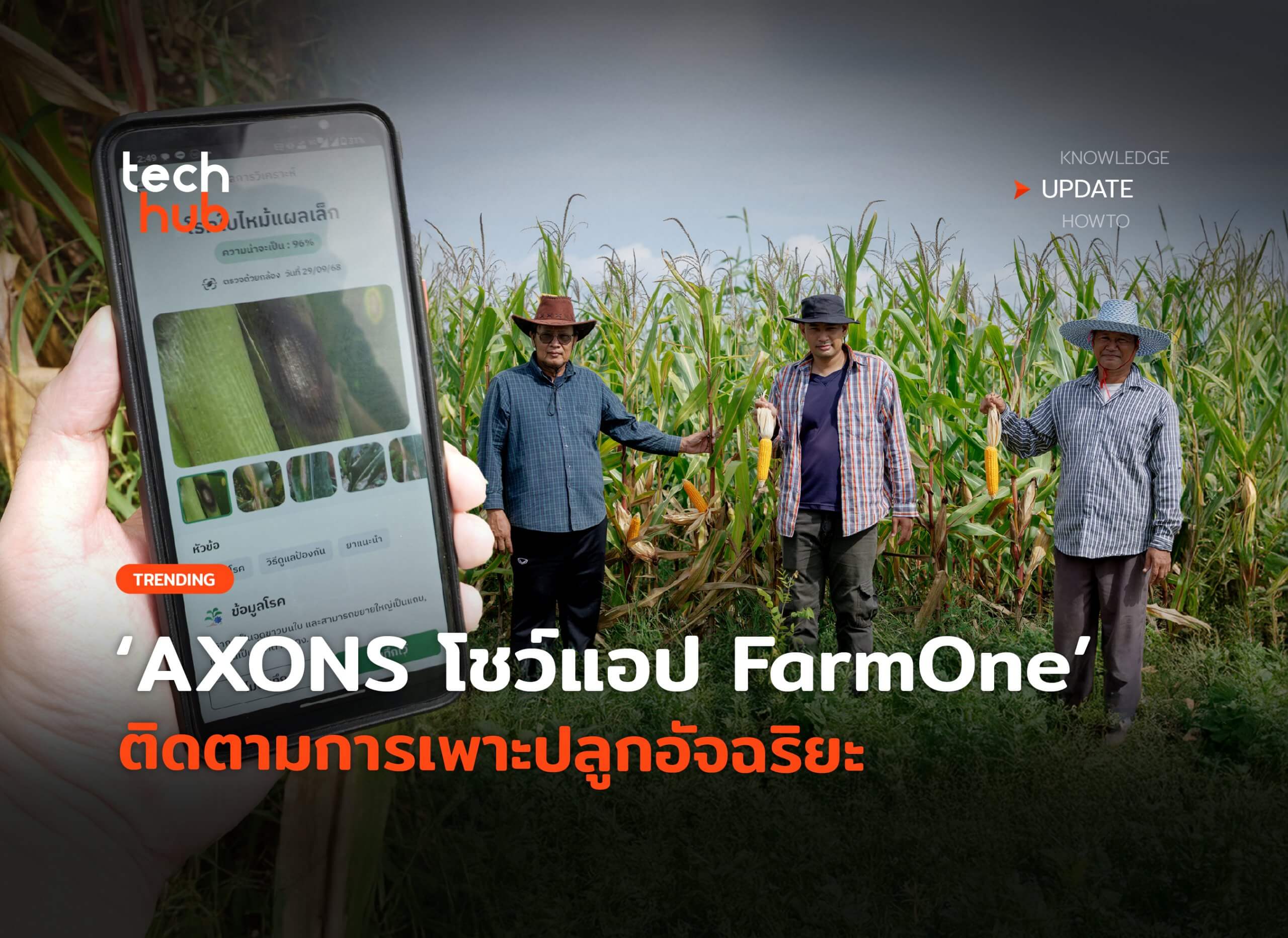 ด้วยเหตุนี้เองทาง AXONS บริษัทด้าน AgriTech สัญชาติไทย ที่อยู่ในวงการเกษตรเทคโนโลยี มากว่า 40 ปี ได้เปิดตัว FarmOne แอปฯ ผู้ช่วยเกษตรกรไทยยุคใหม่ ที่สามารถพยากรณ์อากาศได้แม่นยำก ส่องสุขภาพแปลงด้วยภาพถ่ายจาดดาวเทียม และใช้ AI ช่วยตรวจจับโรคพืชได้