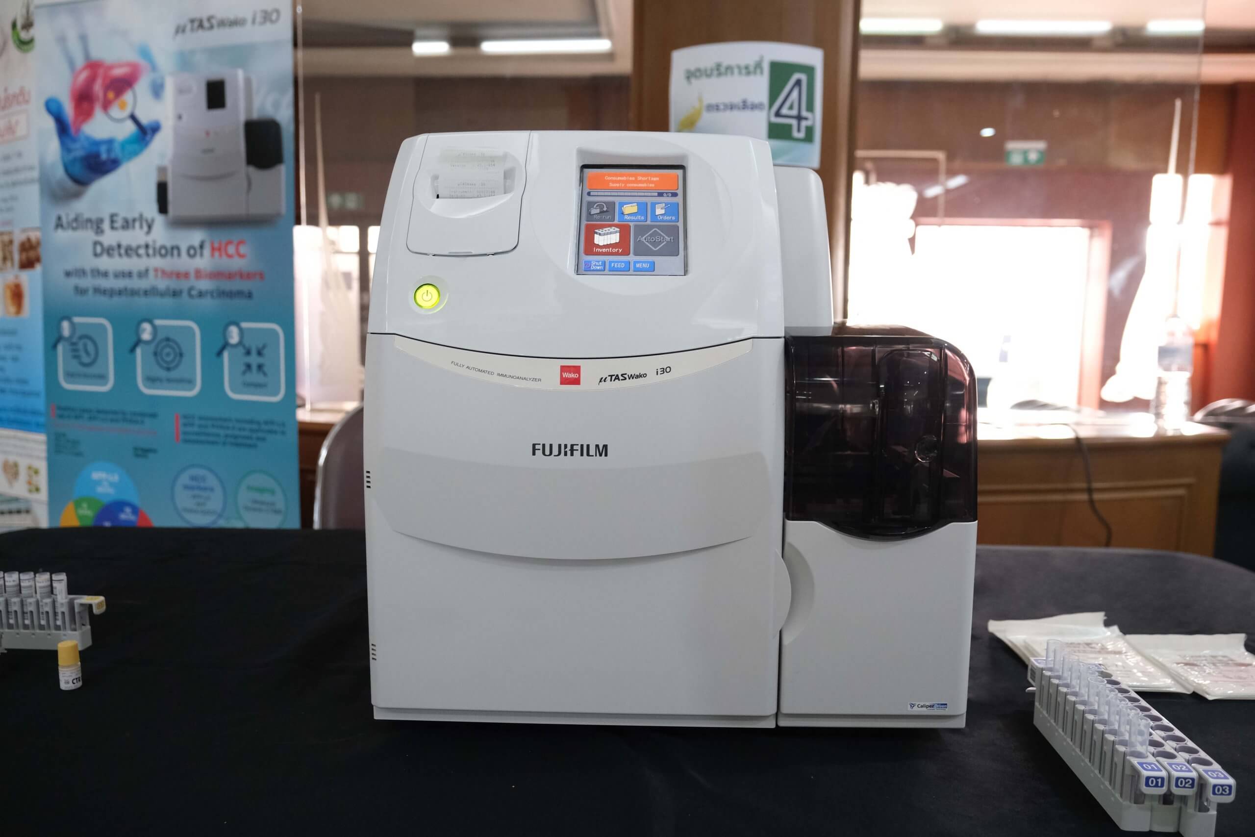 ไฮไลต์ของเทคโนโลยีที่นำมาใช้ในกิจกรรมตรวจคัดกรองที่ รพ. หนองคายในครั้งนี้ รวมถึงชุด HCC Biomarkers 3 ชนิด ได้แก่ AFP-L3, PIVKA-II (DCP), AFP โดย AFP-L3 เป็นเทคโนโลยีการตรวจวัดสารบ่งชี้มะเร็งตับในเลือดจากญี่ปุ่น ช่วยตรวจพบมะเร็งตับชนิด HCC ที่อาจตรวจไม่พบด้วยอัลตราซาวด์ในระยะเริ่มต้นของการเกิดเนื้องอก สนับสนุนให้รักษาได้รวดเร็ว เทคโนโลยีนี้ทำให้ญี่ปุ่นมีอัตราการตรวจพบมะเร็งตับชนิด HCC ในระยะเริ่มต้นสูงขึ้น (มากกว่า 66%*) นอกเหนือจาก AFP-L3 ที่ผลิตในญี่ปุ่นแล้ว ฟูจิฟิล์มยังใช้โซลูชัน ‘μTASWako i30’ เครื่องตรวจวิเคราะห์สารบ่งชี้มะเร็งตับในเลือดแบบครบวงจร ที่ตอบโจทย์การวินิจฉัยมะเร็งตับชนิด HCC โดยเฉพาะ นับเป็นอีกหนึ่งโซลูชันสำคัญที่เข้ามาเสริมทัพให้แก่โซลูชันด้านการวินิจฉัยทางการแพทย์ ซึ่งมีส่วนช่วยในการลดการเสียชีวิตที่สามารถป้องกันได้ผ่านการยกระดับการตรวจพบมะเร็งตับชนิด HCC ตั้งแต่ระยะแรก