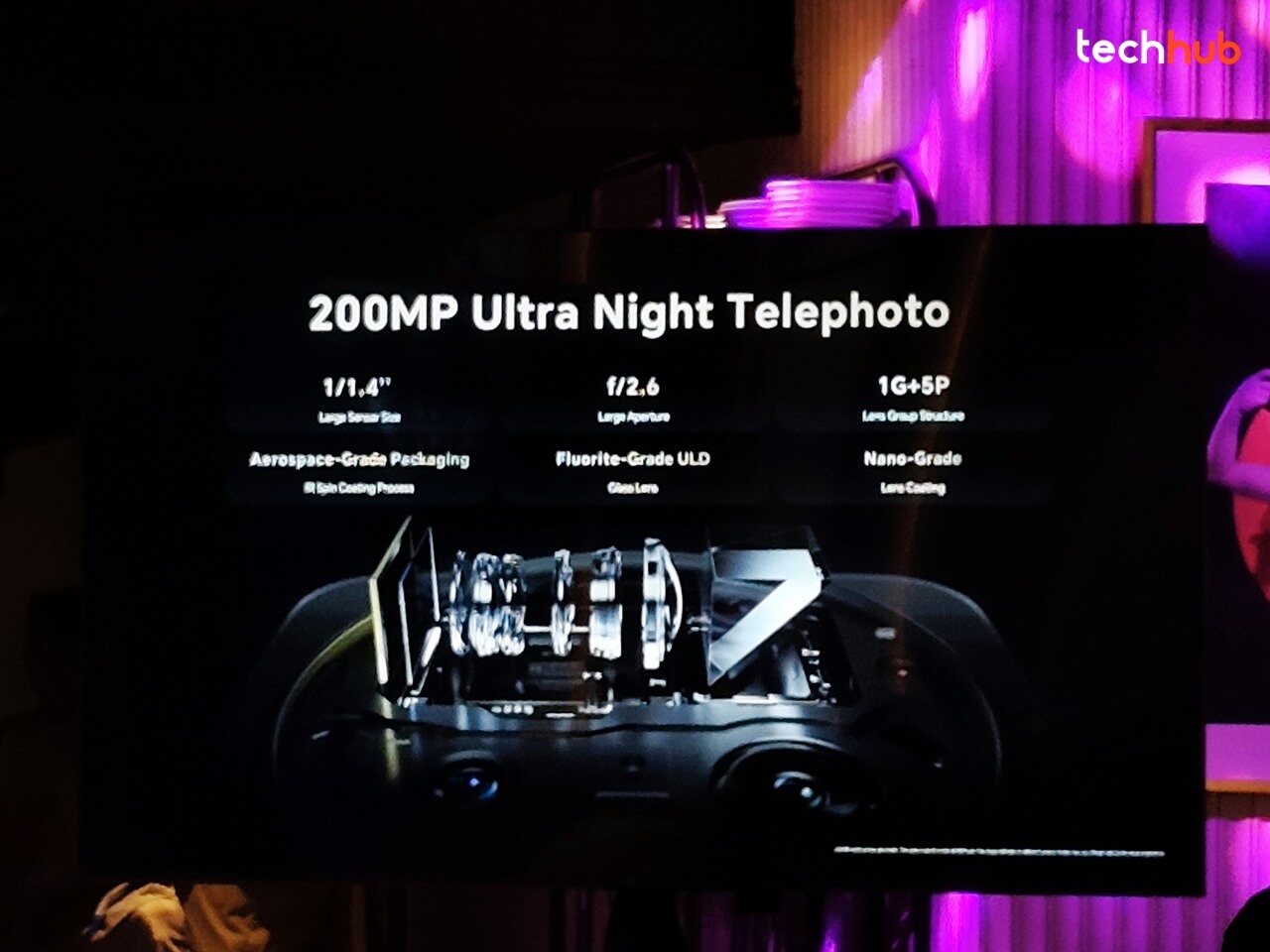 ประเดิมด้วยคอนเซปต์ที่ชูจุดเด่นด้านการถ่ายภาพด้วยกล้องเทเลโฟโต้ 200MP Ultra Night ที่ HONOR มีความภูมิใจนำเสนอเป็นพิเศษเลย เพราะเป็นกล้องซูมที่ออกแบบมาเพื่อถ่ายภาพกลางคืนโดยเฉพาะ ด้วยกล้องซูมความละเอียดสูง 200 ล้านพิกเซล เซนเซอร์ขนาดใหญ่ 1/1.4 นิ้ว (ใหญ่กว่ากล้องหลักของหลาย ๆ รุ่น) รูรับแสงกว้าง f/2.6 พลังการซูม: ซูม Optical ได้ไกล และซูม Digital ได้สูงสุดถึง 100x โดยยังคงรายละเอียดคมชัดแม้แสงน้อย