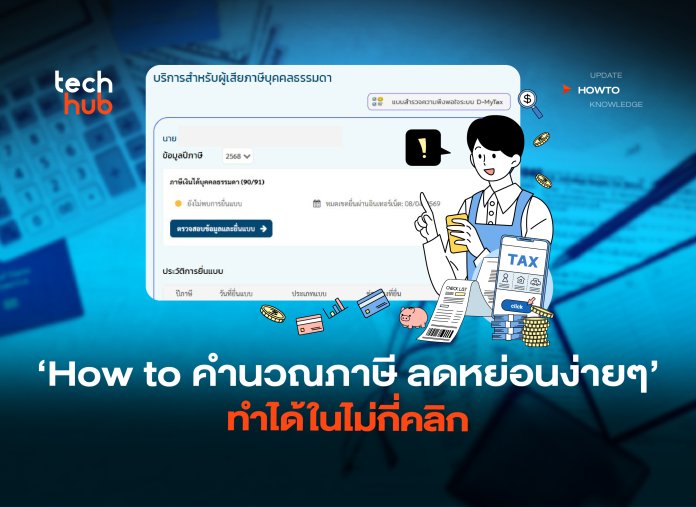 Techhub มีเว็บช่วยคำนวณอย่างง่าย ช่วยเช็คได้ว่ารายได้ที่เรามี ต้องเสียภาษีหรือไม่ และถ้าเสียต้องเสียเท่าไหร่ ใช้ค่าใช้จ่ายอะไรลดหย่อนได้บ้าง