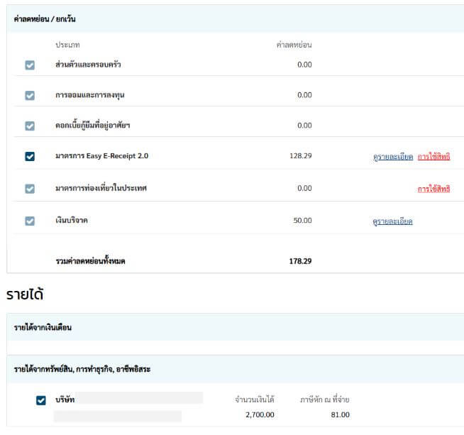 พอกรอกข้อมูลผู้เสียภาษี และคำนวณแล้วตัวเว็บก็จะบอกคำนวณภาษี และตัวลดหย่อนทั้งหมดที่ต้องจ่ายในปีนี้