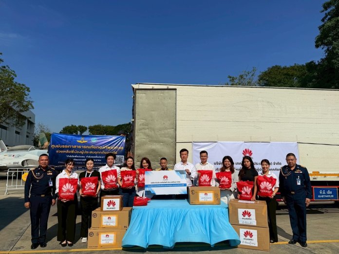 โดยระดมพลังพนักงานจัดทำถุงยังชีพจำนวน 1,000 ชุด พร้อมส่งต่อความห่วงใยและกำลังใจให้ทุกคนร่วมก้าวผ่านสถานการณ์ครั้งนี้ไปด้วยกัน โดยมีนายเจสัน ลี กรรมการบริหารบริษัท พร้อมด้วยพนักงานอาสาหัวเว่ย ได้จัดเตรียมสิ่งของจำเป็น ได้แก่ ถุงยังชีพจำนวน 1,000 ชุด ที่มีอาหารแห้ง นม น้ำดื่ม และน้ำผลไม้ รวมทั้งเพาเวอร์แบงก์ โดยได้รับความอนุเคราะห์จากกองทัพอากาศในการอำนวยความสะดวกส่งสิ่งของไปให้ประชาชนในพื้นที่ประสบอุทกภัยในภาคใต้ต่อไป เพื่อเป็นอีกหนึ่งพลังเล็กๆ ที่สะท้อนเจตนารมณ์ขององค์กรในการยืนหยัดเคียงข้างสังคมไทยในทุกวิกฤต