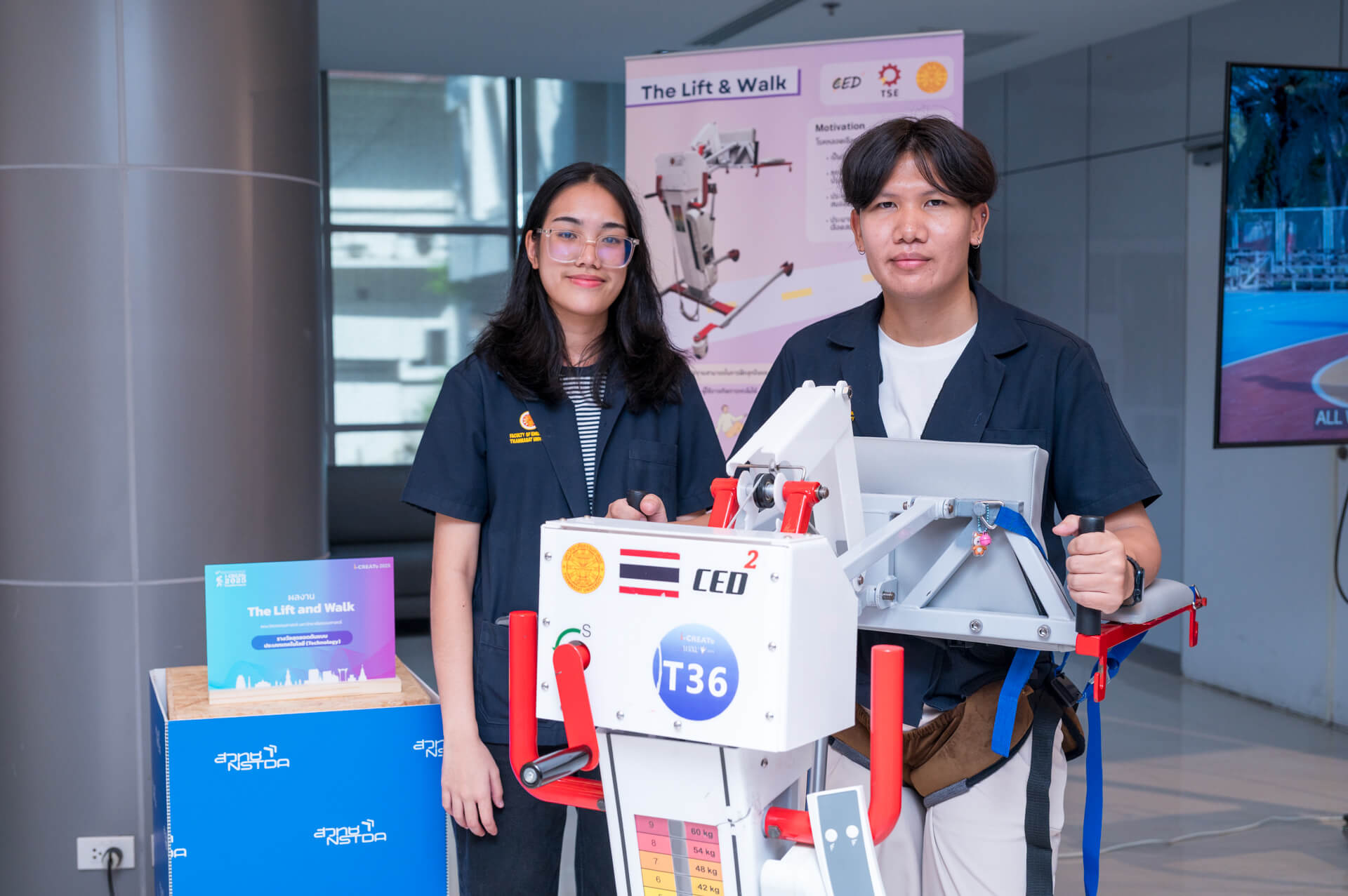 ผลงาน Space walker อุปกรณ์ช่วยฝึกเดิน พร้อมระบบพยุงน้ำหนักบางส่วน นวัตกรรมเพื่อผู้ป่วยหลังกายภาพบำบัดและส่งเสริมสุขภาพผู้สูงอายุในสังคมสูงวัย ผลงานนี้ได้รับรางวัลชนะเลิศอันดับที่ 1 จากงาน i-CREATe 2017 ที่ประเทศญี่ปุ่น โดยคณะวิศวกรรมศาสตร์ มหาวิทยาลัยธรรมศาสตร์ ซึ่งเป็นผลงานที่มีการใช้งานจริงแล้ว นอกจากนี้ ยังมี ผลงาน BART LAB Intelligent Robotic Stair Climbing Wheelchair โดยคณะวิศวกรรมศาสตร์ มหาวิทยาลัยมหิดล ซึ่งได้รับรางวัล Honorable Mentioned Award จากงาน i-CREATe 2024 เข้าร่วมแสดงผลงานด้วย