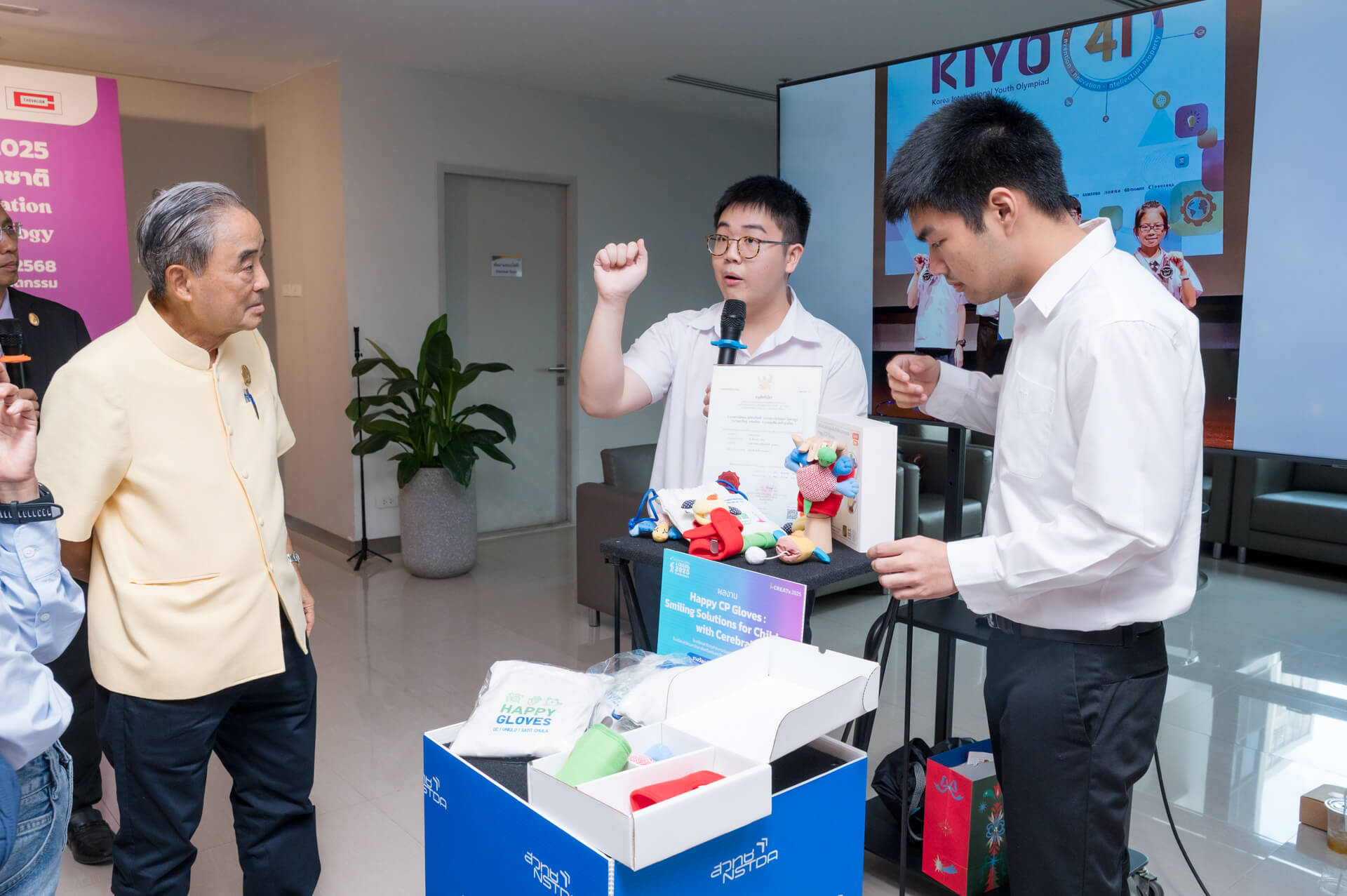 ภายในงานแถลงข่าวได้มีการจัดแสดงผลงานเด่นที่ได้รับรางวัลจากงาน i-CREATe 2024 นครเซี่ยงไฮ้ ประเทศสาธารณรัฐประชาชนจีน อาทิ ผลงาน Happy CP Gloves: Smiling Solutions for children with cerebral ถุงมือนวัตกรรมสำหรับเด็กที่มีภาวะสมองพิการ (Cerebral Palsy) ช่วยลดอาการเกร็งของมือที่อาจทำให้เล็บจิกฝ่ามือจนเกิดบาดแผล และป้องกันกระดูกนิ้วและข้อมือบิดงอ โดย โรงเรียนสาธิตจุฬาลงกรณ์มหาวิทยาลัย ฝ่ายมัธยม โรงเรียนสาธิตมหาวิทยาลัยศรีนครินทรวิโรฒ ปทุมวัน และโรงเรียนเตรียมอุดมศึกษา ได้รับรางวัลเหรียญทอง ชนะเลิศอันดับที่ 1 ประเภทการออกแบบ (Design)  และผลงาน ALL Wheelchair: AI Motion Tracking System for Monitoring Health and Activity ระบบติดตามการเคลื่อนไหวด้วย AI พร้อมเกมที่ควบคุมด้วยการเคลื่อนไหวสำหรับผู้ใช้งานวีลแชร์ เพื่อส่งเสริมการทำกิจกรรมทางกายและติดตามสุขภาพ โดย คณะสหเวชศาสตร์ และ คณะวิศวกรรมศาสตร์ มหาวิทยาลัยธรรมศาสตร์ ได้รางวัลเหรียญเงิน ชนะเลิศอันดับที่ 2 ประเภทเทคโนโลยี (Technology)