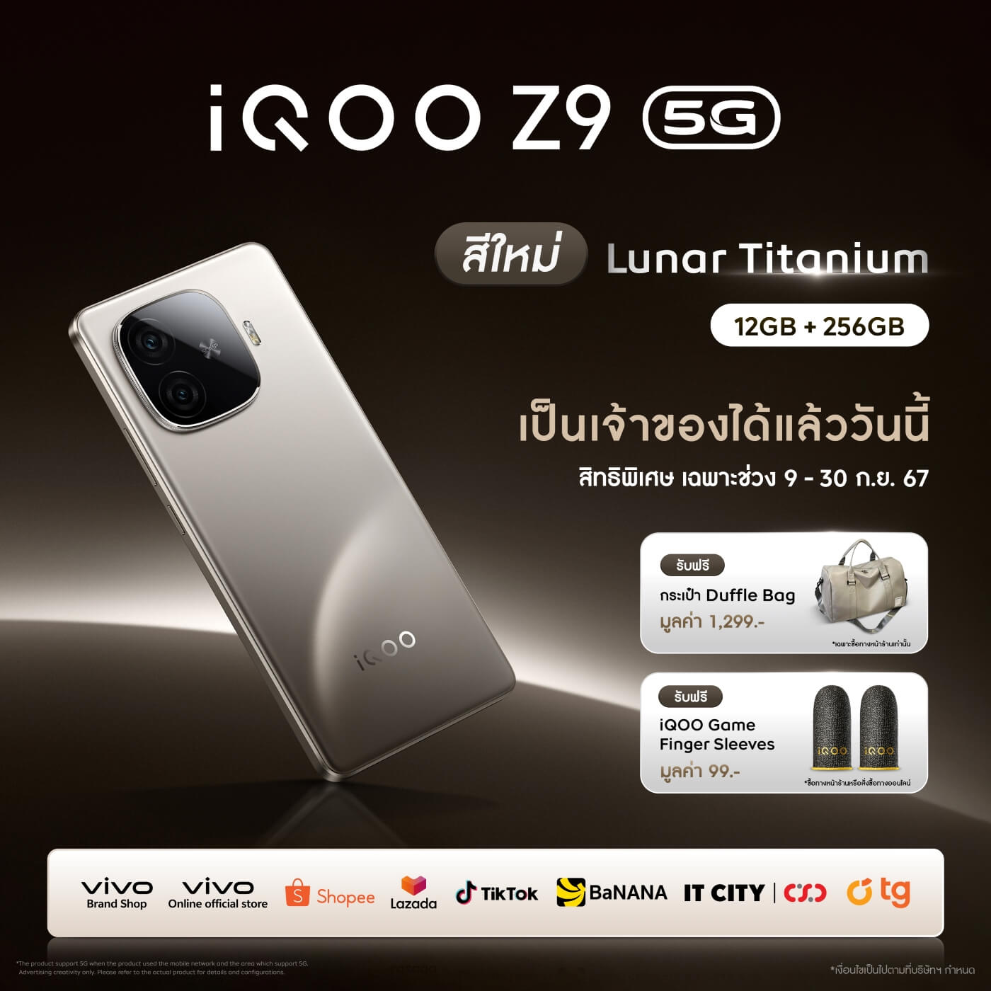 iQOO Z9 5G เตรียมระเบิดขุมพลังไร้ขีดจำกัดในสีสันใหม่ Lunar Titanium พร้อมให้เป็นเจ้าของและรับดีลพิเศษใน 9.9 นี้!
