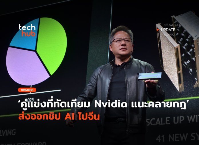 [เป็นประโยชน์กว่า] ปัจจุบันสหรัฐฯ ยังมีกฏคุมการส่งออกชิป AI ระดับสูงไปยังประเทศจีน เหตุหวั่นเป็นภัยต่อความมั่นคง ทำให้ทาง Nvidia ต้องพัฒนาชิป AI รุ่นลดสเปก (อย่างมาก) ไปยังจีนตามกฏของรัฐบาลสหรัฐฯ อย่างไรก็ตาม Jensen Huang ซีอีโอ Nvidia มองว่าวิธีการนี้ อาจสร้างผลเสียมากกว่าประโยชน์ บีบให้จีนกลายเป็น ‘คู่แข่งที่ทัดเทียม’ ในอนาคต
