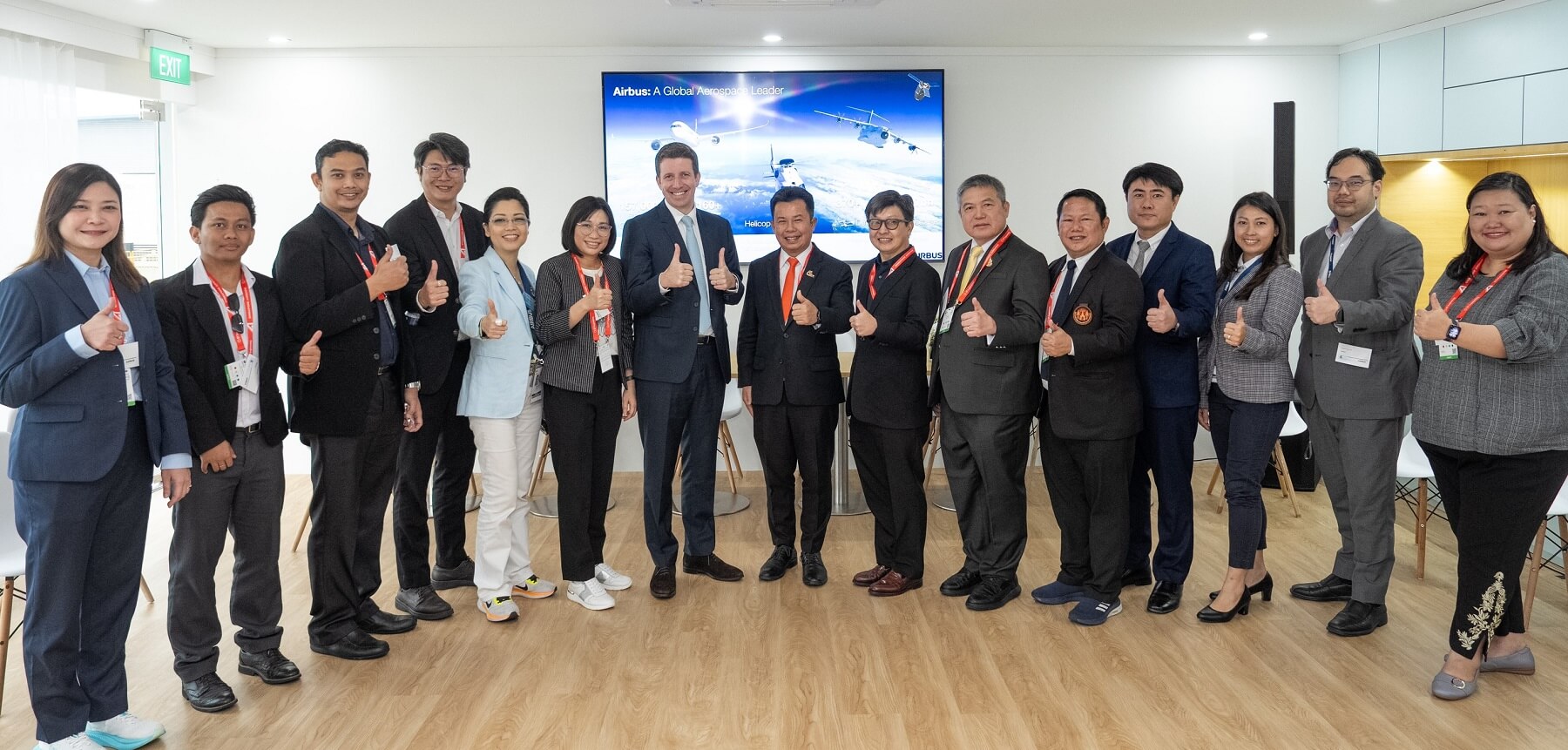 ในการเยือนครั้งนี้ รองศาสตราจารย์ ดร.คมสัน พร้อมด้วย ผศ.ดร.เสริมศักดิ์ อยู่เย็น คณบดีวิทยาลัยอุตสาหกรรมการบินนานาชาติ และคณะผู้บริหาร ได้เดินทางเยือน Airbus Singapore Campus เพื่อหารือความร่วมมือด้านวิจัยและนวัตกรรม โดยมุ่งเน้นการพัฒนา “อากาศยานประหยัดพลังงานแห่งอนาคต”