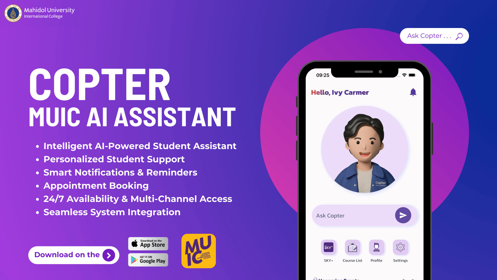 มหิดล อินเตอร์ฯ เปิดตัว Copter AI ผู้ช่วยนักศึกษา ขยันตอบ 24 ชั่วโมง
