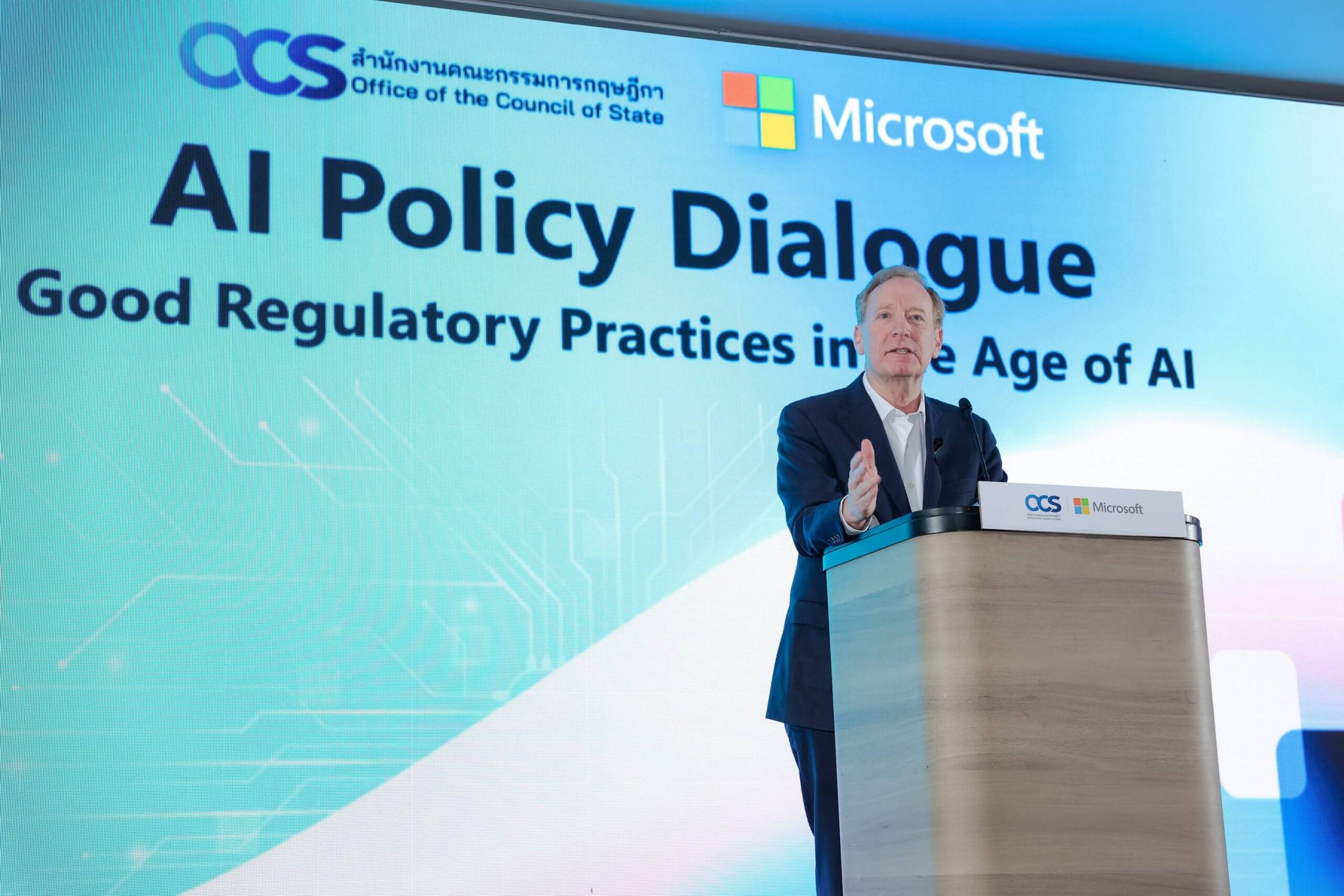 “ประเทศไทยกำลังเดินหน้าไปในทิศทางที่ถูกต้อง เรามุ่งมั่นที่จะสนับสนุนให้คลาวด์และ AI ช่วยขับเคลื่อนการเติบโตของเศรษฐกิจไทยในทุกภาคส่วน และยกระดับชีวิตของคนไทยทุกคน” Brad Smith รองประธานของ Microsoft กล่าว