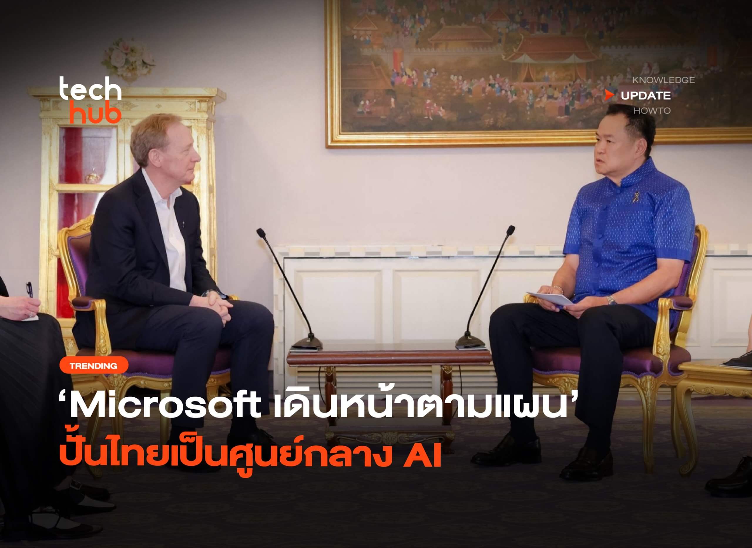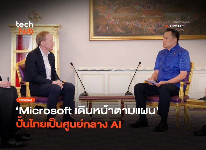 [สานต่อเนื่อง] ย้อนกลับไปในปี 2023 ทาง Microsoft ได้ประกาศลงทุนด้าน AI กับประเทศไทยมาแล้ว โดยตอนนั้น Satya Nadella ซีอีโอของบริษัทเดินทางมาเยือนไทยด้วยตนเอง ต่อด้วยในปี 2025 ก็ส่ง Rodrigo Kede Lima ประธานบริหารประจำภูมิภาคเอเชียเข้ามาสานต่ออีกที กลับมาปัจจุบัน Microsoft ส่ง Brad Smith รองประธานของบริษัท เข้าพบนายกฯ อนุทิน ชาญวีรกูล เพื่อเป็นการตอกย้ำเลยว่า “โครงการกำลังเดินหน้า” ยืนยันด้วยการทุ่มงบกว่า 1 พันล้านดอลลาร์ฯ หรือประมาณ 3.6 หมื่นล้านบาท
