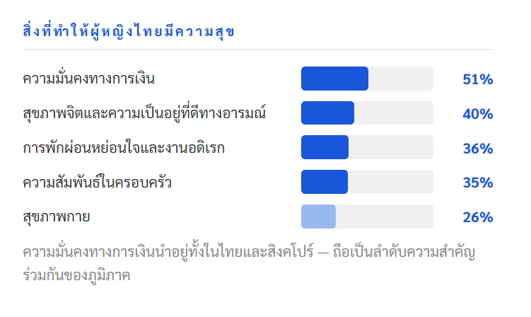 สภาวะในที่ทำงานมีความแตกต่างกันอย่างชัดเจนในแต่ละเมือง ซึ่งสะท้อนให้เห็นถึงอุปสรรคเชิงระบบต่อความก้าวหน้าในอาชีพ โดยสัดส่วนของผู้หญิงที่ระบุว่า “ไม่พบปัญหาใดๆ ในที่ทำงาน” มีดังนี้ สิงคโปร์ 31% กัวลาลัมเปอร์ 30% กรุงเทพฯ 27% มะนิลา 26% จาการ์ตา 26% และฮานอย 18% ข้อมูลนี้แสดงให้เห็นว่าในบางเมือง มีผู้หญิงถึง 82% ที่ต้องเผชิญกับความท้าทายในสถานที่ทำงาน