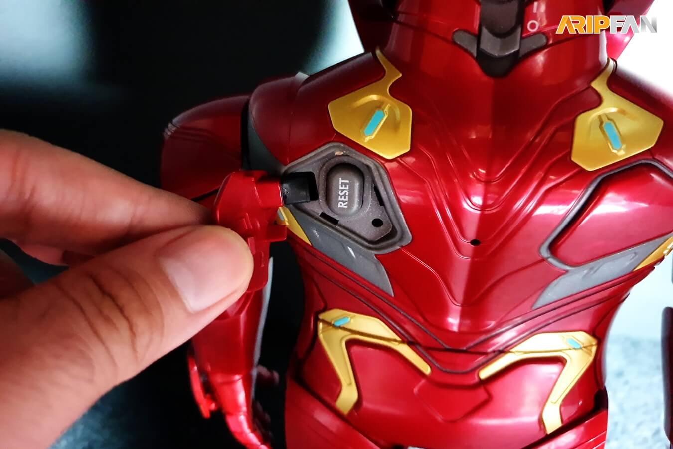 อีกนิด ตรงด้านหลังจะมีส่วนคล้ายปุ่มนูนขึ้นมา 2 จุด ซึ่งเมื่อแกะออกมาก็จะพบกับช่องเสียบ Micro USB สำหรับชาร์จไฟ (ฝั่งขวา) และปุ่ม Reset ตัวหุ่น (ฝั่งซ้าย) จากใจเลย ซ่อนเนียนมากก ใช้เวลาหาเกือบชั่วโมง กว่าจะเจอ 2 จุดนี้