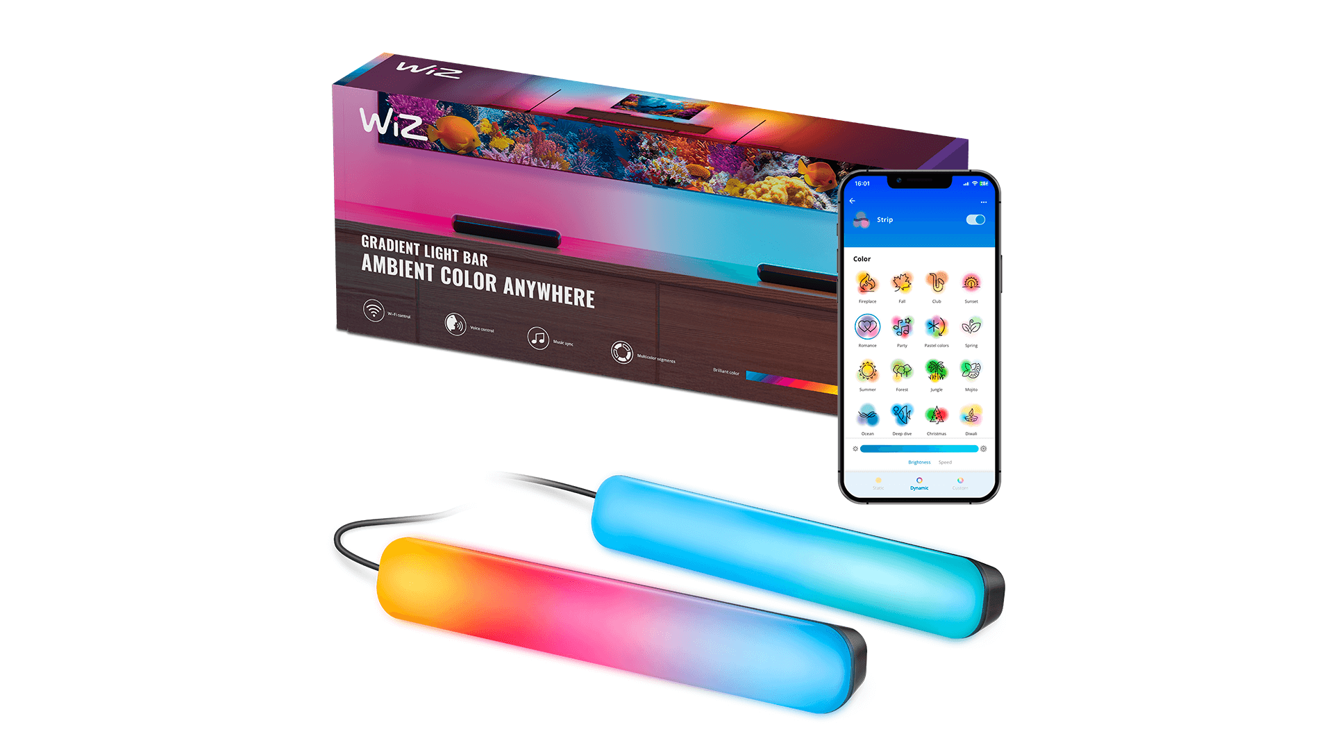 กล่องซิงก์ประมวลผลที่มาพร้อมไฟเส้น RGBIC สำหรับติดหลังทีวี มีให้เลือก 2 รุ่น รองรับทีวีขนาด 55–65 นิ้ว และ 75–85 นิ้ว รองรับภาพ 4K HDR10+ และ Dolby Vision 4K @ 60Hz พร้อม HDMI-IN และ HDMI-OUT อย่างละ 1 พอร์ต รุ่น 55–65 นิ้ว ราคา 4,990 บาท และรุ่น 75–85 นิ้ว ราคา 5,590 บาท - WiZ Gradient Light Bars