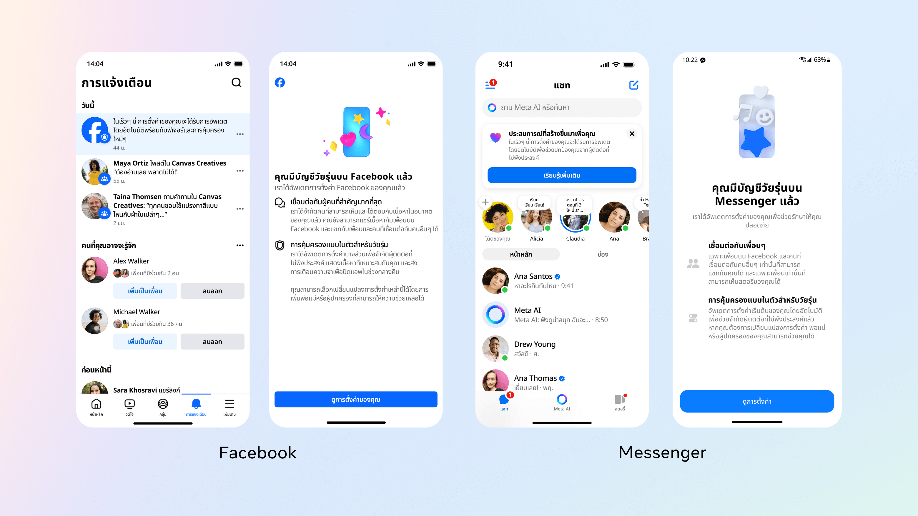 เมื่อหนึ่งปีที่ผ่านมา Meta ได้เปิดตัวบัญชีสำหรับเยาวชน (Teen Accounts) ซึ่งเป็นก้าวสำคัญในการยกระดับความปลอดภัยของผู้ใช้วัยรุ่นบนทุกแอปฯ ของ Meta ปัจจุบันบริษัทได้ปรับบัญชีของผู้ใช้วัยรุ่นหลายร้อยล้านคนทั่วโลกให้เป็นบัญชีสำหรับเยาวชน ครอบคลุมทั้ง Instagram, Facebook และ Messenger นอกจากบัญชีสำหรับเยาวชนจะใช้ได้ทั่วโลกบน Instagram แล้ว  วันนี้ Meta ยังประกาศขยายการใช้งานบัญชีสำหรับเยาวชนสู่ Facebook และ Messenger ในประเทศไทย ภายในงาน Screen Smart Thailand อีกด้วย