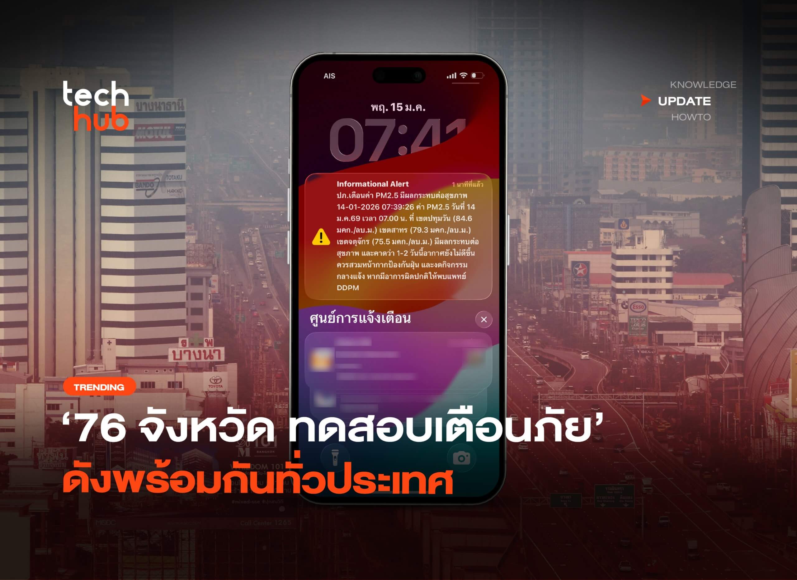 เตรียมพร้อมก่อนภัยมา ปภ. จะทดสอบ Cell Broadcast (ระดับประเทศ) อีกครั้งในวันที่ 20 ม.ค. 69 เวลา 14.00 น. ดังพร้อมกันทั่วประเทศ จะมีเสียงเตือนดังขึ้น 8 วินาที รับสัญญาณทดสอบพร้อมกัน 76 จังหวัด และกรุงเทพมหานคร
