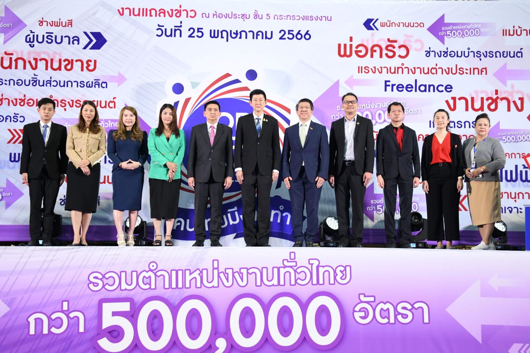กระทรวงแรงงาน โดยกรมการจัดหางาน แถลงข่าว JOB EXPO THAILAND 2023 ภายใต้ธีมงาน “คนไทย มีงานทำ คนหางาน งานหาคน” ชวนคนหางานกับตำแหน่งกว่า 500,000 อัตรา ภายในงานได้รับเกียรติจาก นายบุญชอบ สุทธมนัสวงษ์ ปลัดกระทรวงแรงงาน เป็นประธานแถลงข่าว ร่วมด้วย นายไพโรจน์ โชติกเสถียร อธิบดีกรมการจัดหางาน นายสันติ นันตสุวรรณ นายสิบหมื่นชัย โพธิสินธุ์ รองอธิบดีกรมการจัดหางาน พร้อมด้วยผู้บริหารหน่วยงานในสังกัดกระทรวงแรงงาน และผู้แทนจากภาคบริษัท ภาคเอกชน ร่วมงานดังกล่าว ณ กระทรวงแรงงาน