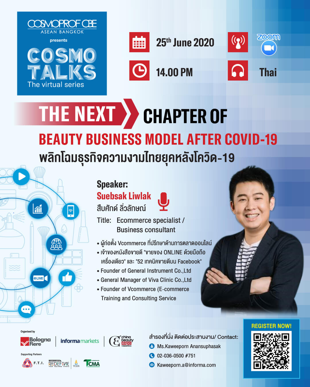 เตรียมพบกับสัมมนาออนไลน์ที่จะพาคุณเจาะลึกทุกเรื่องธุรกิจความงามหลังยุค Covid-19 ในหัวข้อ “THE NEXT CHAPTER OF BEAUTY BUSINESS MODEL AFTER COVID-19”