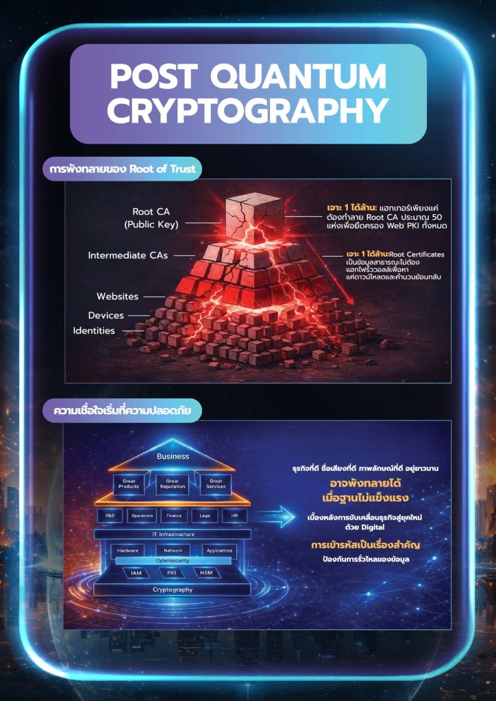 ดังนั้น การปรับตัวสู่ยุค Post-Quantum จึงเป็นโอกาสสำคัญในการยกระดับองค์กร ทั้งการสร้างความเชื่อมั่นในการให้บริการดิจิทัล การพัฒนาสถาปัตยกรรมองค์กรให้มีความยืดหยุ่น (Crypto-Agility) และการสนับสนุน Digital Trust เพื่อสร้างความยั่งยืนในโลกดิจิทัลที่มีความซับซ้อน