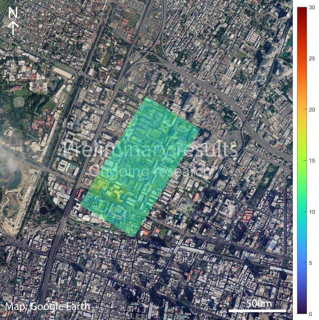 ข้อมูลที่จากการตรวจวัดด้วยโดรนจะถูกนำมาวิเคราะห์ร่วมกับข้อมูลภาพถ่ายดาวเทียมเพื่อศึกษาการกระจายตัว พฤติกรรม และการเปลี่ยนแปลงของแก๊ส ซึ่งสาเหตุเบื้องต้นที่ทำให้แก๊สไนโตรเจนไดออกไซด์พุ่งสูงขึ้น คือการจราจรบนถนน และทิศทางของลมและแสงแดด ที่ทำให้มลพิษถูกกระจายไปอย่างรวดเร็ว